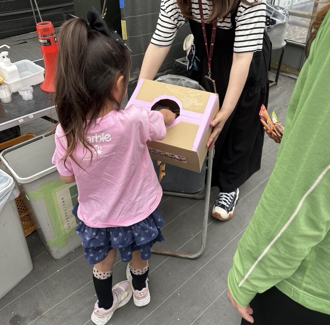 子供たちは夢中になってお菓子を掴んでいて、たくさんの笑顔が見られました♪