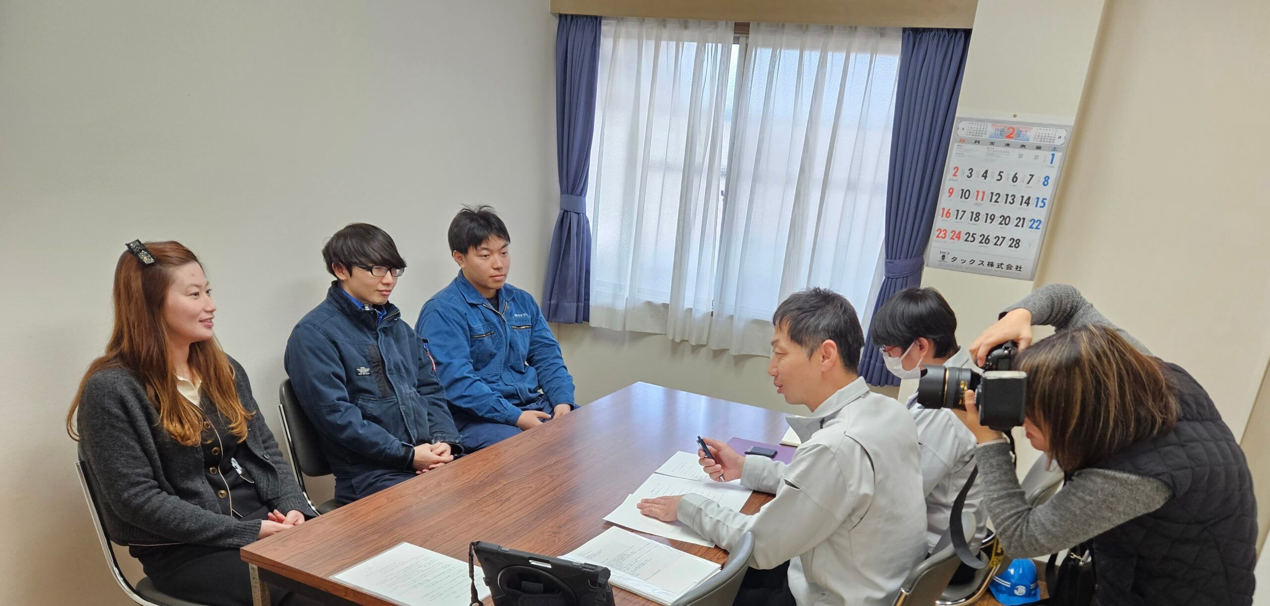 社内で取材と撮影が行われました。