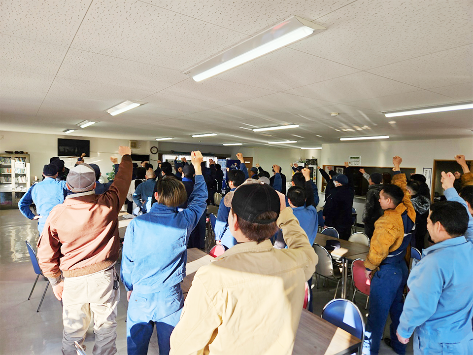 今年は係長主導のもと “頑張ろう”三唱を行いました。