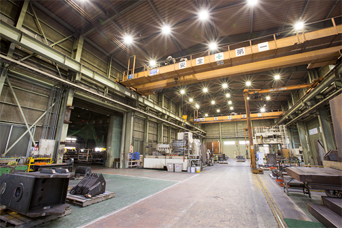 旧工場には溶接職場、汎用機械やマシニングセンター、プレスなどの先加工職場があり、一部量産のワークを製作するための量産職場があります。 。